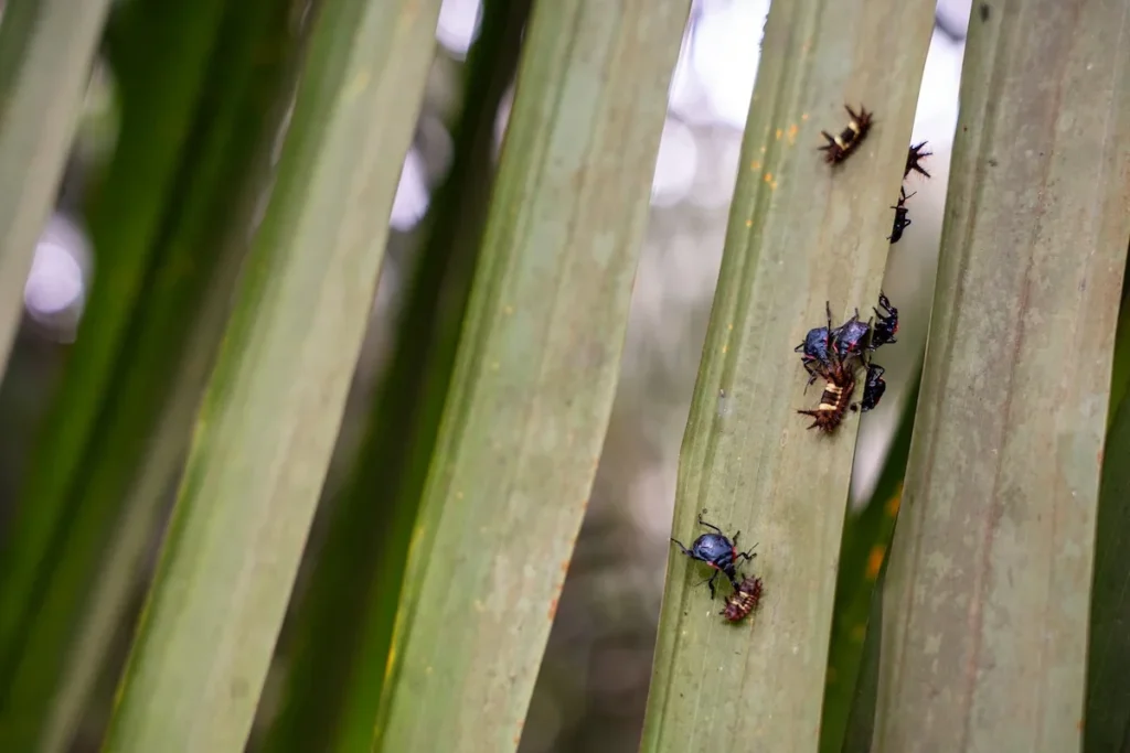 A Agropalma mantém em um laboratório próprio a criação de uma espécie nativa de percevejo que é predadora natural da lagarta-desfolhadora – uma das pragas mais comuns das plantações de palma. Nesse ambiente controlado, a empresa desenvolve esse tipo de inseto, acostumando-o desde o início a se alimentar das suas presas. Quando atinge a fase adulta, ele é liberado na plantação para executar o manejo de pragas de forma natural – processo que acontece trimestralmente para não comprometer o equilíbrio do ecossistema local. Como resultado, a equipe agrícola da companhia tem notado uma menor incidência de lagartas e besouros que são nocivos às plantações nas fazendas onde os percevejos foram introduzidos.