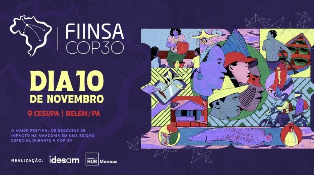 O “FIINSA 2025 COP30 – Onde fazer fala mais alto” é realizado pelo Idesam e Impact Hub Manaus, com co-realização do CESUPA e apoio de uma ampla rede de parceiros. A iniciativa tem como objetivo ser um catalisador de articulações positivas, negócios viáveis e soluções inovadoras – construídos da Amazônia e para a Amazônia.